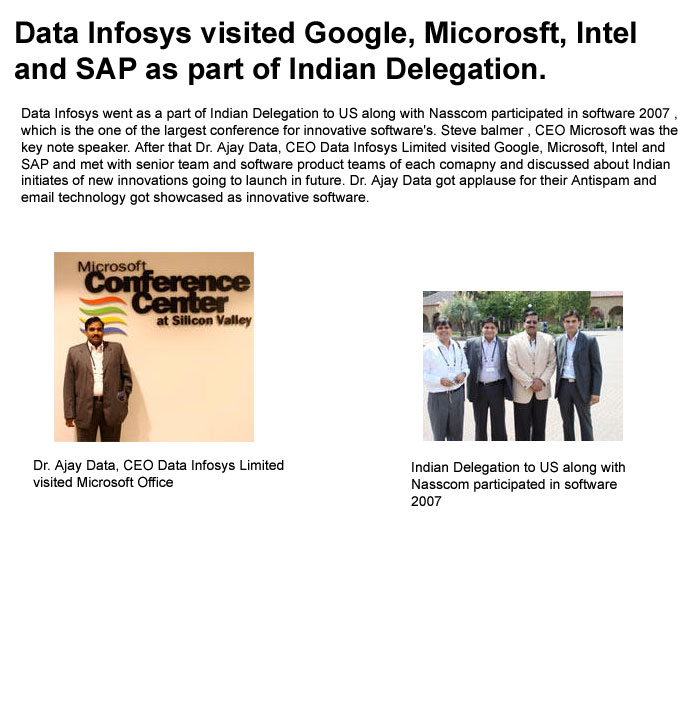 Data Ingenious Global Limited (Formerly Known as Data Infosys) visited Google, Microsoft, Intel and SAP as part of Indian Delegation