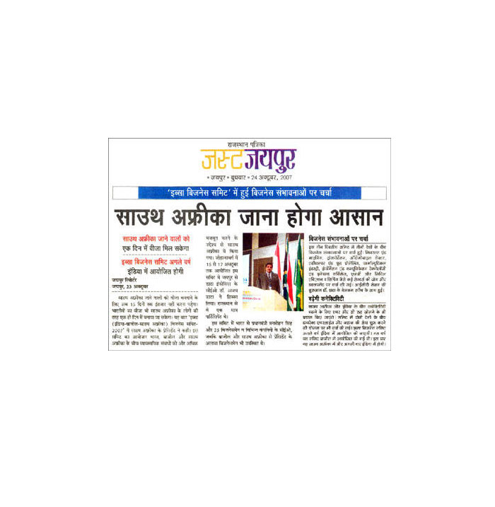 Traveling to South Africa will be Easy- 30 October, Rajasthan Patrika-Just Jaipur