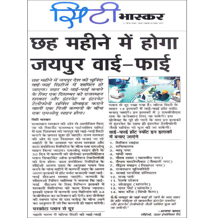 In 6 months there will be Wifi all over jaipur- 30 November, Citi Bhaskar