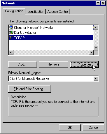 Once you have the necessary components listed, highlight TCP/IP and select Properties